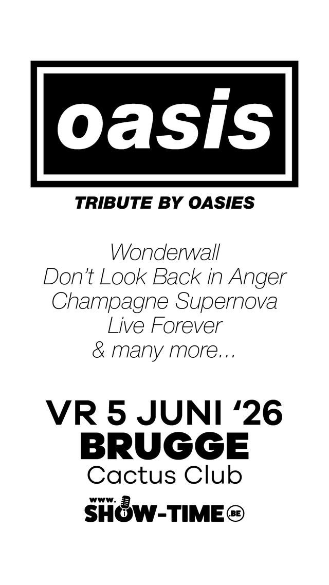 Begin juni is de Cactus Club het decor voor een Oasis tribute. 's Lands grootste tributepromoter show-time.be, met kantoren in Brugge, voorziet op 5 juni 2026 een optreden van OASIES. De tributeband brengt hulde aan de legendarische britpopformatie. Tickets en info: www.show-time.be