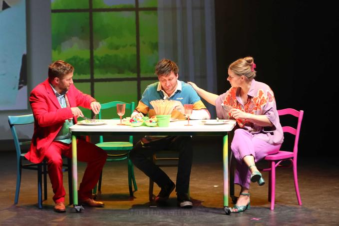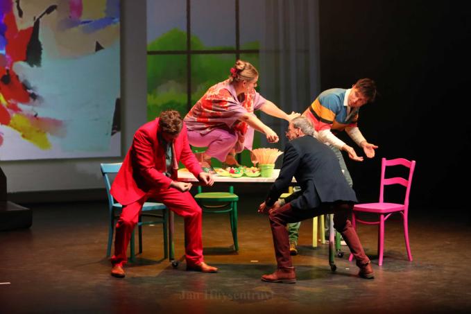 Op het podium stond een sterke cast van tien acteurs die met zichtbaar plezier een heerlijke parodie op het verenigingsleven brachten. Ook Maaike Cafmeyer gaf de voorstelling extra glans, terwijl Martijn Devos met zijn virtuoze muzikale begeleiding voor de juiste sfeer en dynamiek zorgde. Het stuk bouwde elke avond op naar een krachtige apotheose die steevast uitmondde in een daverend slotmoment.