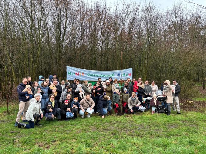 Ondanks het druilerige weer zakten zaterdag 21 februari een zestigtal ouders en kinderen af naar het gemeentebos aan de Kruisbergstraat in Ruiselede. Daar werd voor de 24ste keer een zomereik geplant ter ere van alle pasgeborenen van het voorbije jaar. In 2025 kwamen maar liefst 58 baby’s ter wereld in de deelgemeente: 30 jongens en 28 meisjes. “De geboorteboomplanting brengt jonge gezinnen samen rond een gedeeld geluksmoment. Elke boom die hier wortelt, groeit letterlijk mee met een nieuwe generatie Ruiseledenaars,” zegt schepen van Milieu en Klimaat Brecht Warnez.