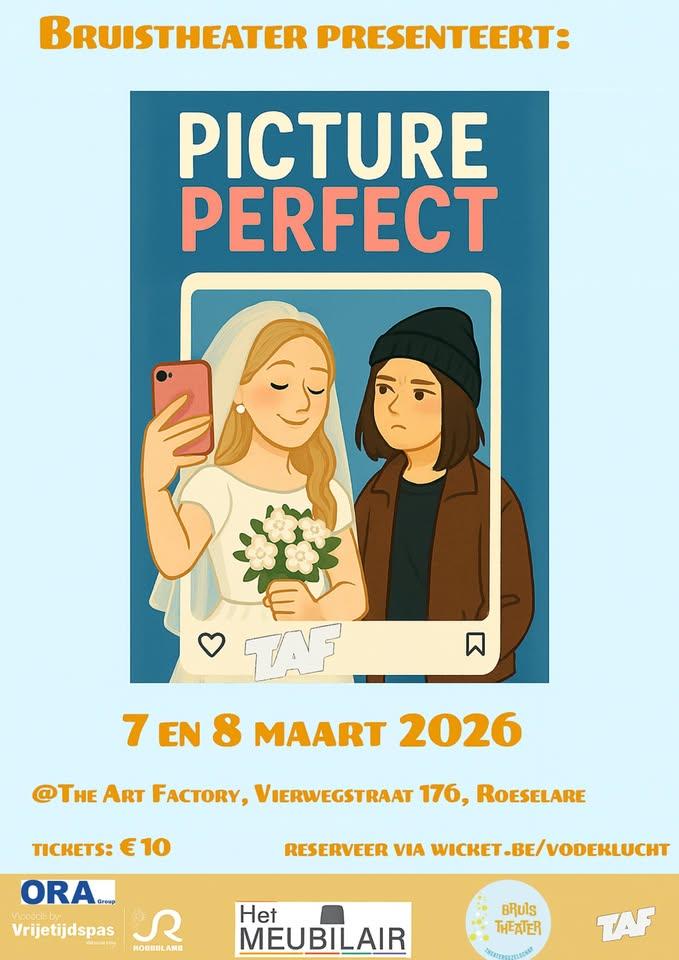 Bruistheater is inmiddels aan haar vijfde voorstelling toe. Picture Perfect wordt opgevoerd op 7 en 8 maart in TAF (Vierwegstraat 176 Roeselare) en is een warm, humoristisch verhaal over twee zussen die uit elkaar groeiden maar die nu hun weg terug naar elkaar proberen te vinden.