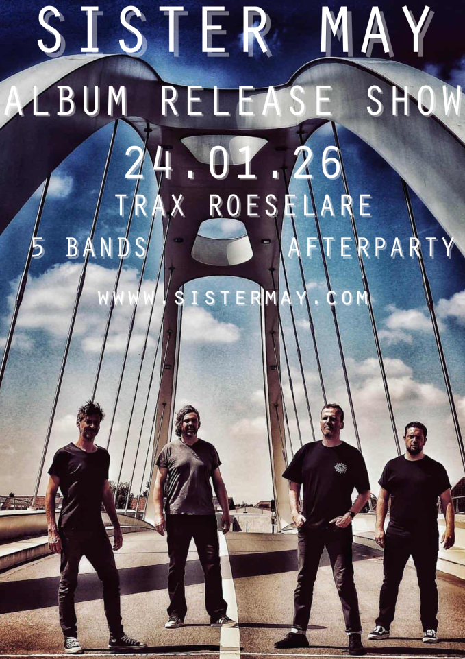 De Roeselaarse band Sister May stelt op vrijdag 24 januari 2026 haar nieuwe album VII voor tijdens een releaseshow in TRAX Roeselare. De avond wordt een brede staalkaart van lokale en regionale muziekscènes, met opvallend veel Roeselaarse wortels. Sister May beweegt zich op het snijvlak van industrial rock, post-metal en elektronische invloeden. De band staat bekend om haar intense liveshows en een compromisloze sound. VII is een conceptalbum dat thema’s als maatschappelijke vervreemding en zingeving verkent.