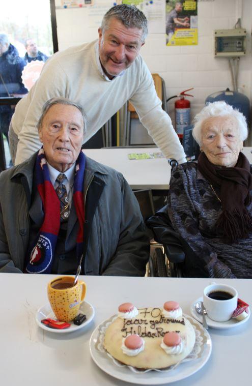 Roger en Hilda zijn de trouwste supporters van KVP Gits. Afgelopen week was het precies 70 jaar geleden dat ze in het huwelijksbootje stapten. KVP Gits liet dit niet zomaar voorbijgaan. Vandaag, zondag 18 januari, mochten Roger en Hilda ter gelegenheid van hun platina jubileum onder het goedkeurend oog van KVP-voorzitter Peter Hanne tijdens de rust van de wedstrijd een met veel plezier geschonken feesttaart aansnijden.