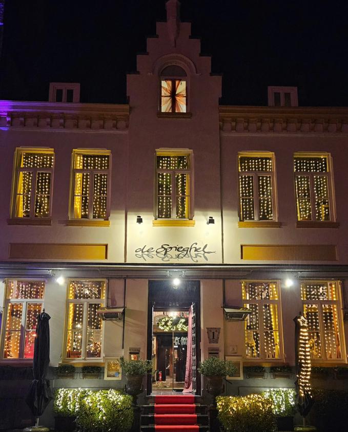 Met de fiets die bij Vist Damme kan gehuurd worden, trekken we er op uit. We peddelen richting Nederlandse grens waar we overzetten met de Kobus. Dit overzetbootje verbindt Hoeke met Lapscheure en wordt in de zomer vaak gebruikt door fietsers en wandelaars die hiermee op een originele manier de Damse Vaart kunnen oversteken. José De Cauwer blijft het herhalen: hoed je voor de hongerklop. Met deze bemoedigende koerswijsheid stallen we onze tweewielige rossen aan Restaurant De Spieghel pal aan het stadhuis. Gastheer Brent en Wim zijn al enkele jaren het sympathieke gezichten van De Spieghel in hartje Damme. Beiden koesteren de typische brasseriesfeer die deze zaak zo kenmerkt: een eeuwenoud decor met veel mezzanine, oude objecten en een opvallende kroonluchter.. Resultaat: de rustige sfeer en de landelijke omgeving garanderen enkele uurtjes stressvrij genieten. Om te keuvelen maar ook –en vooral- om eens te proeven van de authentieke brasseriekeuken met klassiekers als paling, kalfsniertjes Dijonnaise, bouillabaisse of een van de twee aantrekkelijke menu’s. Tijdens winterdagen biedt het haardvuur nostalgische charme en bij goed weer nodigt een heerlijk terras uit voor mooie tafelmomenten met uitzicht op de Markt.