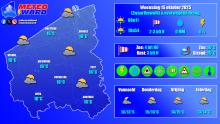 Vanavond en vannacht koelt het af naar 10-13°C. Het blijft zwaarbewolkt en overwegend droog met kans op wat lokale nevel. De noordoostenwind waait zwak.
