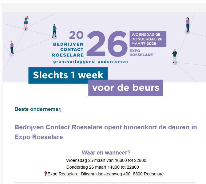 ROESELARE: Bedrijven Contact op 25 en 26 maart in Roeselare