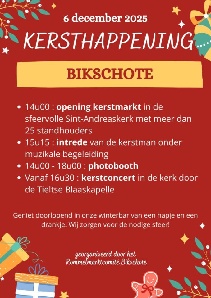 BIKSCHOTE: Kerstmarkt op 6 december