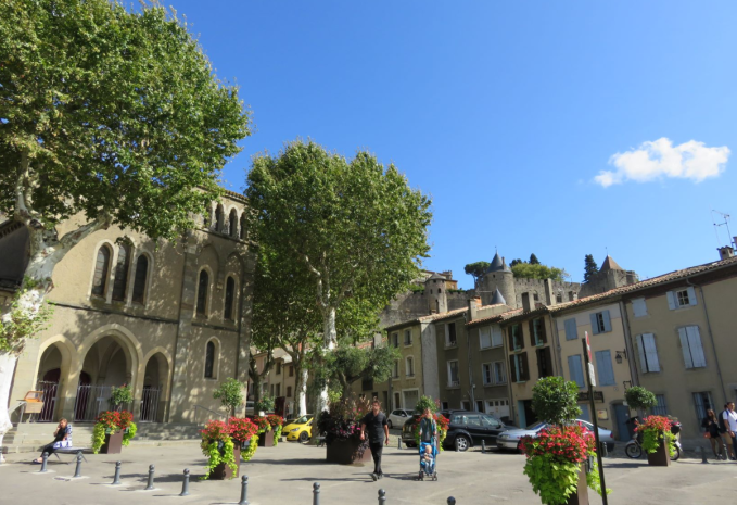 Iets voor het middaguur start ik mijn pelgrimstocht en al snel doemt de indrukwekkende poort voor me op. Als ik over de ophaalbrug bij de Narbonnaise-poort loop, zie ik de buste van Dame Carcas. Zij speelt de hoofdrol in vele verhalen. Carcassonne dateert uit de Romeinse tijd, maar het huidige uiterlijk is grotendeels ontstaan in de middeleeuwen. De beroemde dubbele muren, met hun scherpe torens en poorten, maken de stad tot een van de best bewaarde citadels in Europa. De Cité, zoals het fortige deel wordt genoemd, staat op de UNESCO-Werelderfgoedlijst en trekt jaarlijks duizenden bezoekers. Het beeld wanneer je via het steile straatje Carcassonne binnenwandelt, is niet bepaald fraai. Links en rechts souvenirwinkeltjes tjokvol prullaria. Nepzwaarden, harnassen en snoepbananen bij duizenden. Beschouw het een beetje als de Katelijnestraat van Brugge maar dan zonder de 20 pralinewinkels.