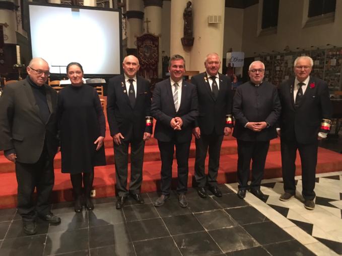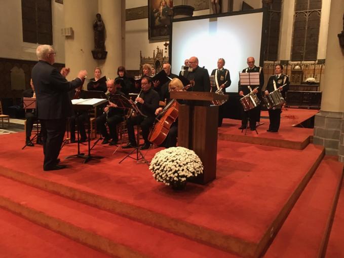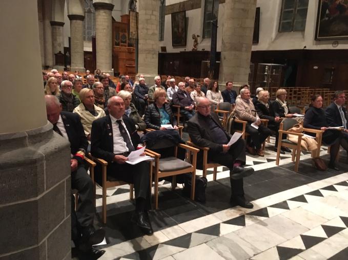 Het jaarlijkse Remembrance concert in de Sint Michielskerk in Roeselare op 8 november werd bijgewoond door een 100 tal geinteresseerden. Ere-gouverneur Paul Breyne, burgemeester Kris Declercq en de schepen van cultuur Mieke Vanbrussel tekenden ook present. Net als de vorige jaren werd het een knalprestatie met het Vocaal Ensemble Adriaen Willaert en Musica in Gioia onder de algemene leiding van Eric Hallein. Het werd opnieuw een genieter voor het publiek. De beelden en verhalen uit WO 1 en WO 2 stond ditmaal in het teken van het verzet. Ze vormden de hoeksteen van het samenzijn. Geert Messiaen verdiepte de aanwezigen in het vaak vergeten verhaal van 150.000 Belgische verzetsmensen .De samenzang met het koor en volk: “ Pack up your troubles. It’s a long way to Tipperary “ was een treffend voorbeeld van een gevoel van samenhorigheid. De Nationale hymnes sloten dit stijlvol concert af , gevolgd door een deugddoende receptie.
