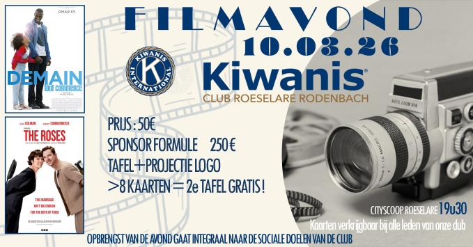 ROESELARE: Kiwanis Club Roeselare Rodenbach organiseert filmavond