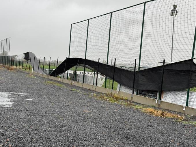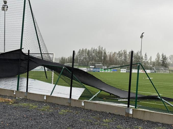 Storm Benjamin heeft zware schade aangericht bij voetbalclub FC Dadizele. Voorzitter Bart Allossery. “Uit voorzorg hadden we al met het bestuur beslist om de trainingen van vanavond volledig af te gelasten, ook voor de eerste ploeg. Toen ik in de namiddag eens poolshoogte ging nemen rond het veld kon ik mijn ogen niet geloven. De afsluiting achter het doel was volledig verdwenen, net als het deel tussen de parking en het veld. Ook de ballenvanger ligt tegen de grond. Op bepaalde plaatsen is er dus gewoonweg geen afsluiting meer rond het voetbalveld. Vandaar dat we de beslissing genomen hebben om bij Voetbal Vlaanderen aan te dringen om alle wedstrijden die dit weekend zouden doorgaan op FC Dadizele te laten uitstellen door overmacht. Ook de thuiswedstrijd van zaterdag tegen Comines zal naar onze mening niet kunnen doorgaan want er is geen neutrale zone meer. We hopen, eens de storm is gaan liggen, dat we snel de schade kunnen laten herstellen zodat er vanaf volgende week wel weer kan gevoetbald worden.”