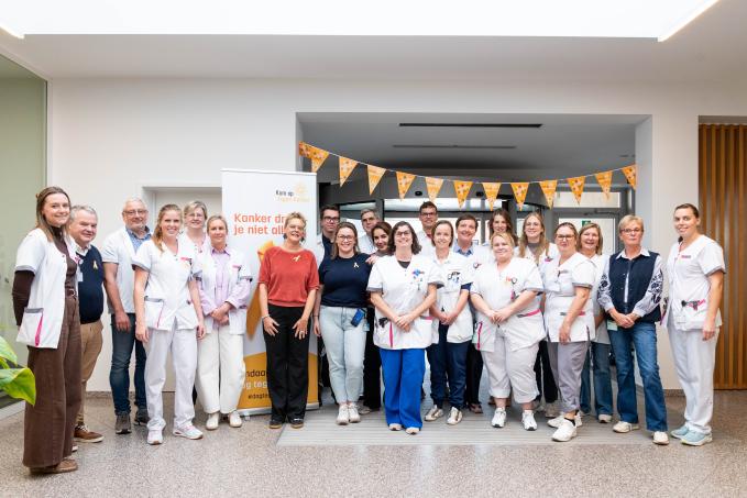 Ze spelden het gele lintje op als teken van solidariteit. Want net zoals het lintje, draag je kanker niet alleen. "We verwenden onze oncologische patiënten en hun naasten met hartverwarmende activiteiten: Er werden de hele dag door verwenmomenten voorzien. Schoonheidsconsulentes kwamen vrijwillig patiënten verzorgen via massages, pedicures en gelaatsverzorgingen. In de namiddag was er een bingo spelnamiddag. Naast de leuke prijzen die te winnen vielen, stonden plezier, ontspanning en lotgenotencontact voorop. Nadien voorzag men nog iedereen van taart en koffie.