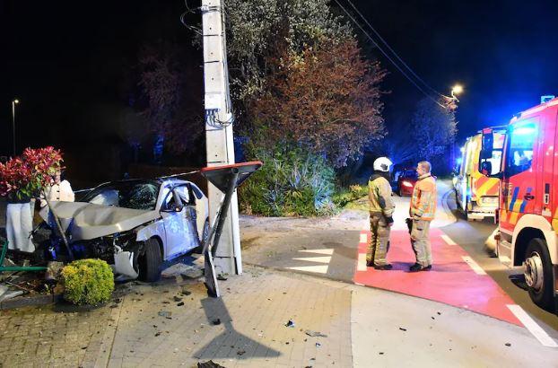 In Vichte, een deelgemeente van Anzegem, gebeurde in de nacht van zondag op maandag een zwaar ongeval langs de Waregemstraat. Een auto ging uit de bocht, raakte eerst wat groen naast het fietspad en stevende vervolgens af op een knoert van een elektriciteitspaal. De wagen botste gelukkig alleen met de linkerflank tegen de paal, maar vernielde wel een verkeersbord, een straatnaambord, een omheining en een stevige brievenbus van een woning.